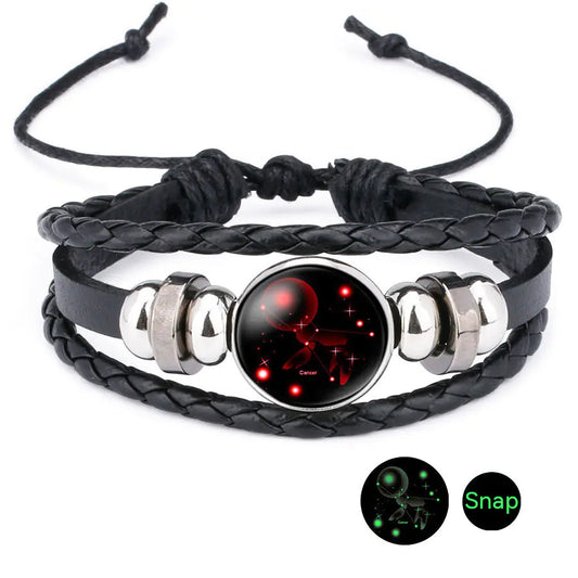 Pulseira do Zodiaco de Couro de Vaca e Pedra do Tempo Purificadora